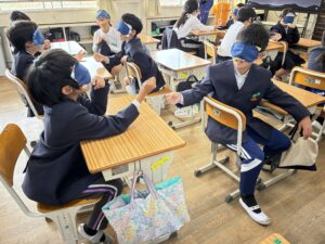 これまでに、車椅子体験は3年生の時にすでに学習しています。4年生では、それぞれ講師をお招きして、認知症キッズサポーター養成講座(9/17)、点字体験(10/1)、手話体験(10/3)の3つの学習をし、11月12日にはアイマスク体験をしました。また、12月3日には、パラリンピックの世話をしておられた方から話を聞かせていただきます。