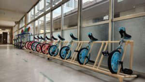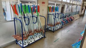 | ・一輪車(4サイズ) 9台 ・一輪車整理台(7台用) 3台 ・竹馬 36組 ・竹馬整理台(20組用) 2台 ・カーテン一式(レール含) 2教室分 |