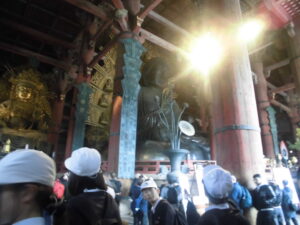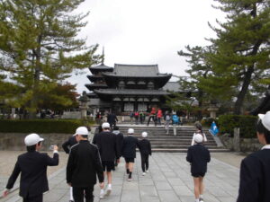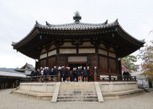 最初の見学先は、姫路城とともに日本初の世界遺産となった法隆寺。大講堂や五重塔、金堂、大宝蔵院、夢殿などを見学しました。当日は幸いなことに、秘仏とされる夢殿の救世観音菩薩像も公開期間中で見ることができました。