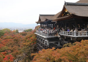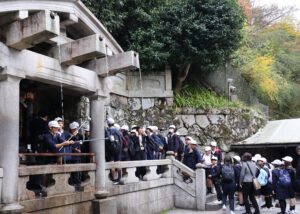 法隆寺の次は奈良公園。若草山で昼食をとり終えると、早速お土産を買ったり、鹿と遊んだり(遊ばれたり?)しました。そのあとは二月堂や三月堂、鐘楼などを巡り、東大寺大仏殿へ。いよいよ大仏様の見学です。大仏殿の大きさ、大仏の大きさにも驚きの声が上がっていました。奈良を出ると、京都の清水寺へ。清水の舞台から京都の街並みの眺めを楽しみました。宿舎では、豪華な夕食や友達と過ごせる一夜への喜びがあふれ出ていました。